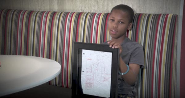 Toyota USA shared a nice video featuring an 11-year old inventor, Bishop Curry, pictured at left with a design drawing. His dad, Bishop Curry Sr. works for Toyota Financial Services and he's also in the video.
