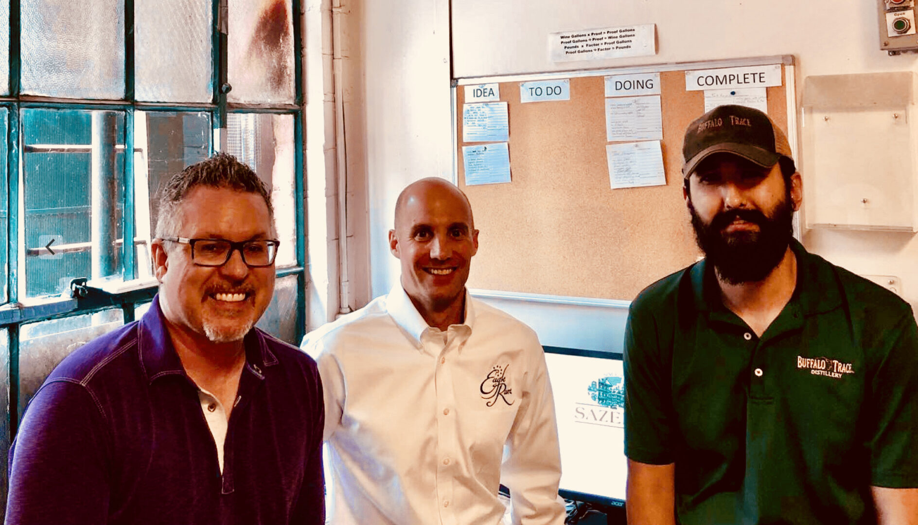 Mike has embraced what might be called “lessons from Toyota,” as taught to healthcare people, and is now training and coaching people who make some very fine bourbon, including Aaron Krentz, Processing Supervisor (at right).