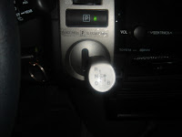 3) The picture shows the gear shift. Again, it's not the typical approach. Many people have asked (included a valet parking guy), “What does B mean?” It reminds me of the time Homer Simpson was buying a cheap Russian car and the salesman told him “Put it in H!”. “B” is like a “low gear” mode, I was told, for driving down a mountain. For the life of me, I couldn't figure out what “B” would signify. It means “Brake” mode apparently, which operates like “low gear” but Prius only has one gear. Living in Dallas, I won't be coming across mountains.