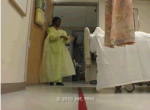There was an element, I guess, of visual control put in place — a red line on the floor. If you cross the red line (and get closer to the patient), you have to glove and gown up.