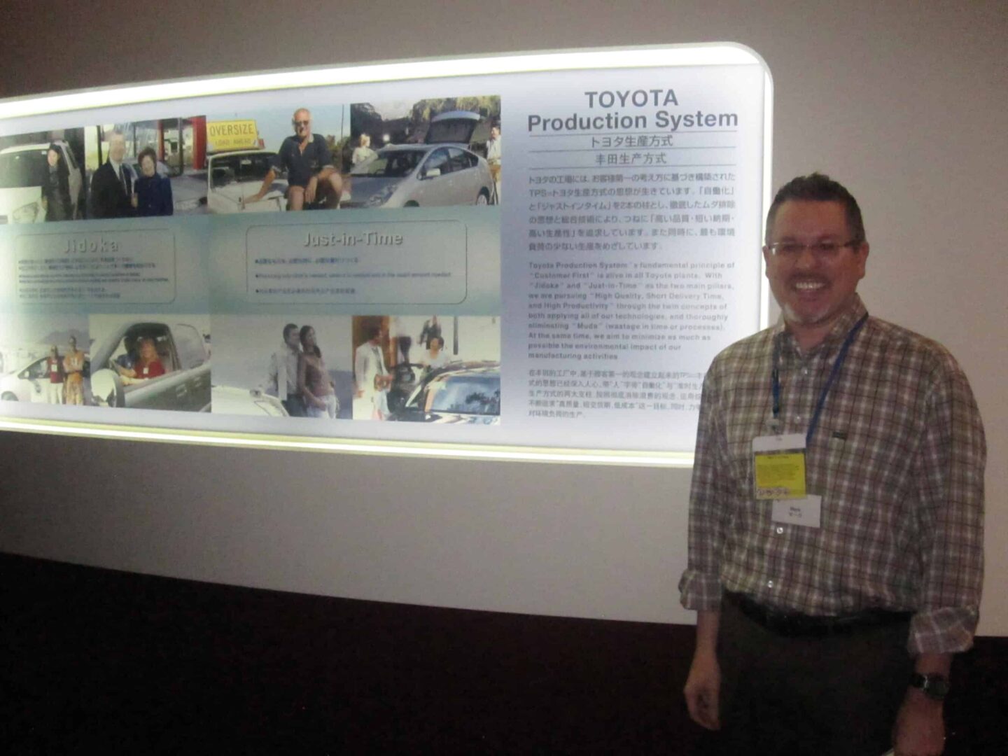 Me at the Toyota City visitor center. They really emphasize TPS in their exhibits, with detailed explanations. Click to zoom in and read.