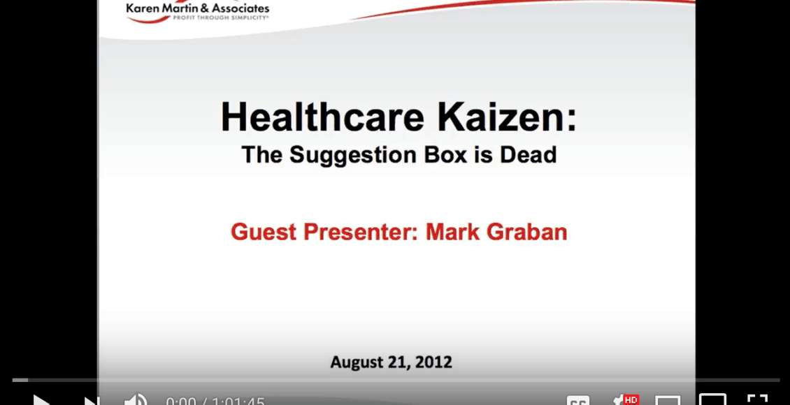 Suggestion boxes rarely lead to meaningful change because ideas disappear into slow, opaque processes. Healthcare Kaizen works because leaders and frontline staff collaborate to test, implement, and learn from improvements in real time. The result is better engagement, safer care, and continuous improvement that becomes part of daily work–not a side program. Thanks to Karen Martin for hosting me for this webinar. Webinar Description: Suggestion box programs, while well intended, usually fail to engage employees … Continue reading Healthcare Kaizen vs. Suggestion Boxes: Why Continuous Improvement Requires Leadership