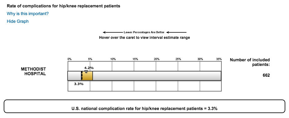 A patient might also see that the hospital has joint replacement complication rates that are higher than the national average.