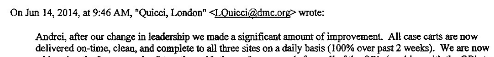 As the emails say, it was “intended to streamline the process and doesn't include new hires or extra money for equipment or space.” I wonder if they moved some equipment and people? Did they fire the people at the other two hospitals? Is that what they meant by “streamline” or were they trying to provide better service to the surgeons, ORs, and patients? Did they make sure (REALLY make sure) that Detroit Receiving Hospital would have enough capacity to do all of that work that was being consolidated?