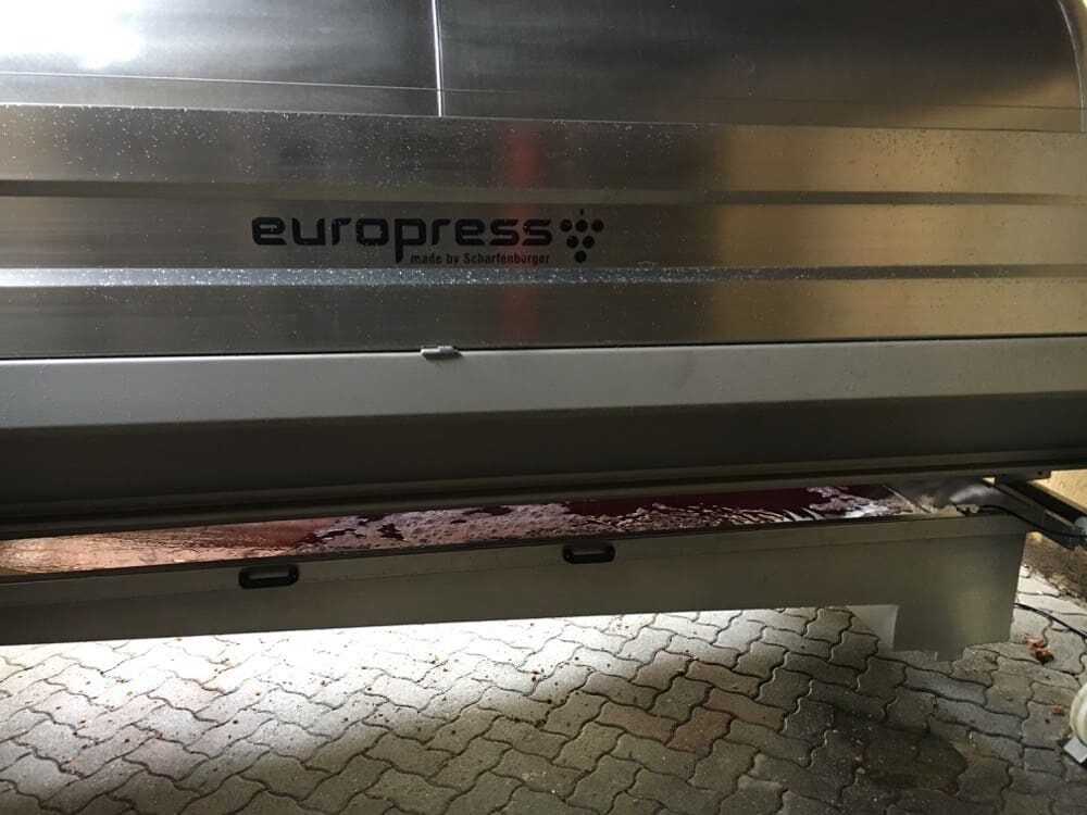 After one of his employees walked us through some of their vineyard plots, Patrick led us through parts of the “value stream” beyond the vineyards. Harvest was just being completed in most areas we visited, so there was a lot of activity, including the initial pressing and fermentation of grapes, which leads to some amazing smells (and risk of breathing in too much carbon dioxide, if you're not careful).