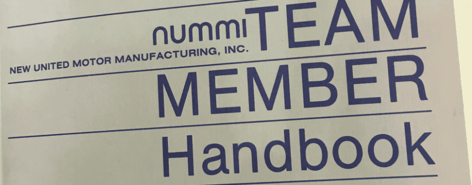 I recently wrote about my exploration of the collected papers of the late Don Ephlin, a UAW senior leader and a professor of mine at MIT. In that first post, I shared a few quotes scattered throughout the original NUMMI Team Member Handbook from 1984, the year the plant reopened as a joint venture between GM and Toyota. (Read past posts about NUMMI). Remember that this used to be a GM plant in Fremont, California. It … Continue reading Highlights from the Original 1984 NUMMI Team Member Handbook (Part 1)