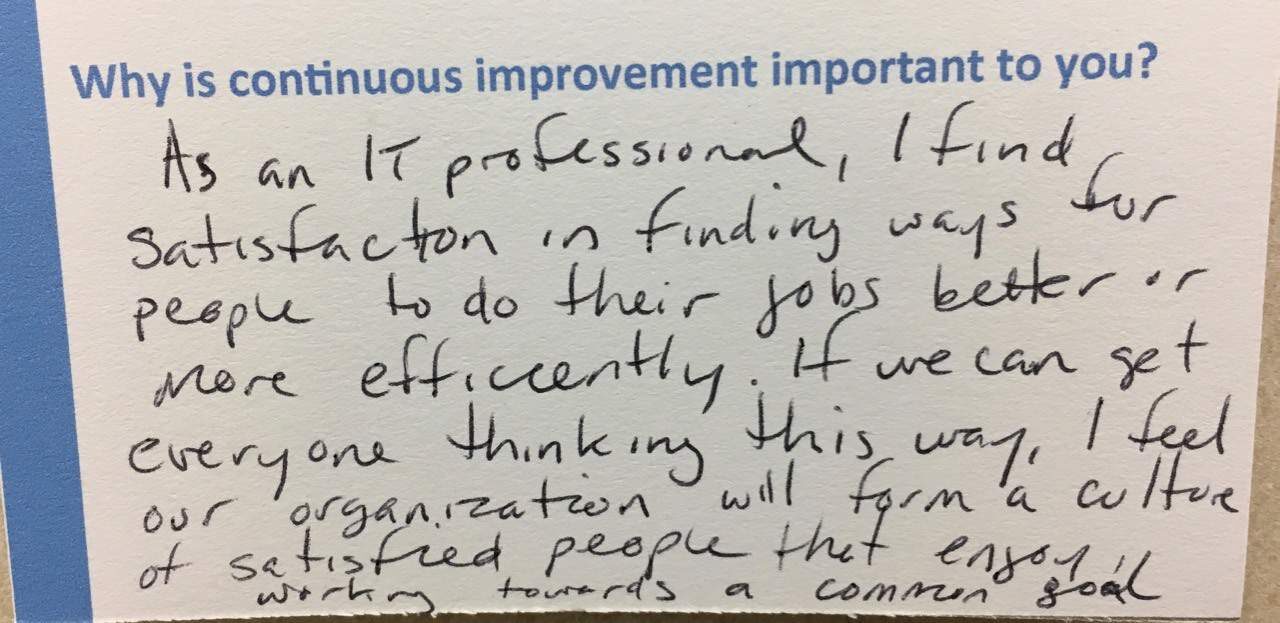And our customers who are here have similar beliefs… and reasons why improvement is important to them and their organizations.