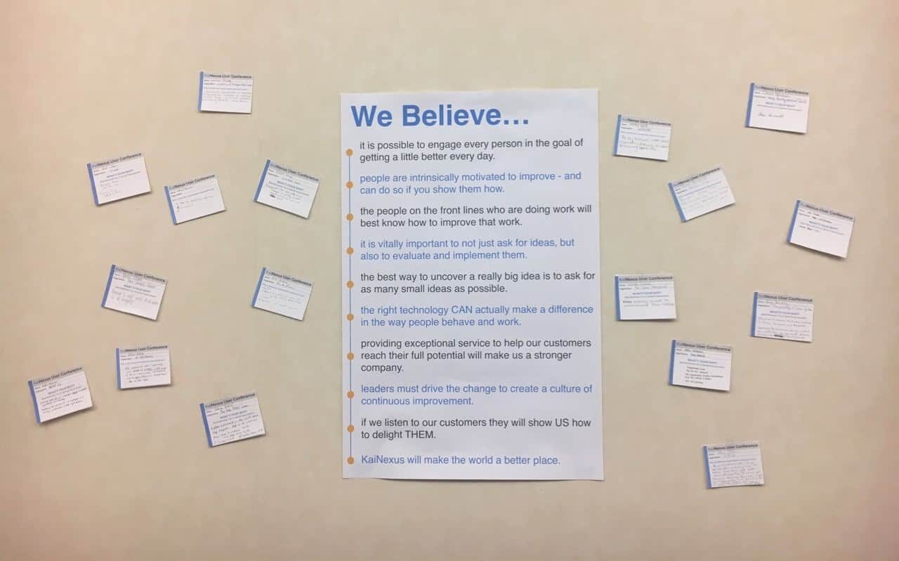 To kick off the event, we shared a video that features KaiNexus team members sharing what we believe about people, organizations, and continuous improvement: