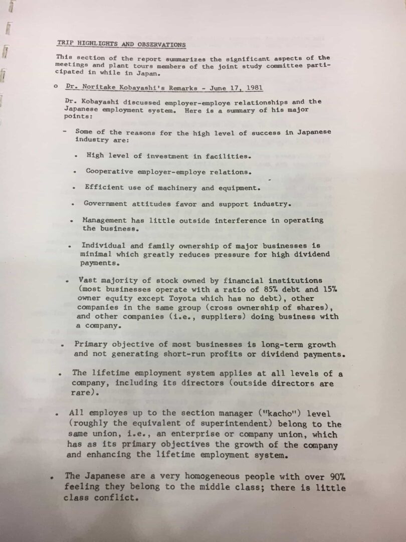 Today's Post in <50 Words: I continue sharing documents from the Don Ephlin library archive. What did Ford and the UAW learn when they visited Japan in 1981? Many of the things that made Japanese industry successful are the same things that make organizations successful with Lean today, including in healthcare.
