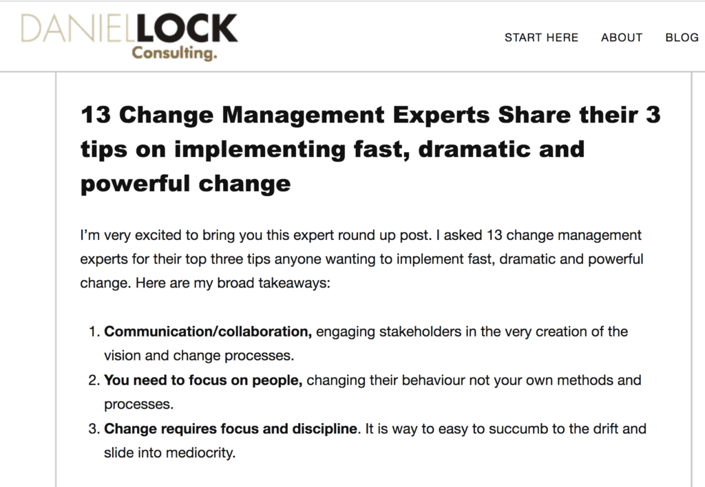 I was honored that Daniel Lock Consulting asked for my thoughts on change management, which they included in this article alongside those of the esteemed John Kotter and others.