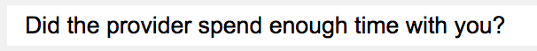 Oh, and get this… the NP says they are going to shorten and squeeze her appointment times. But, they might also punish the providers if they get poor marks from patients about spending enough time with them… as their survey asked: