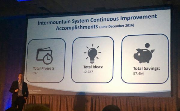 Last week, I shared (on Twitter and in this blog post) this slide from the presentation given by Tim Pehrson who is CEO of North Region (five hospitals) & VP of Continuous Improvement for Intermountain Healthcare.