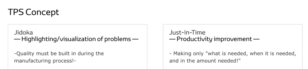 And then, there is the Toyota official page on the Toyota Production System, which includes: