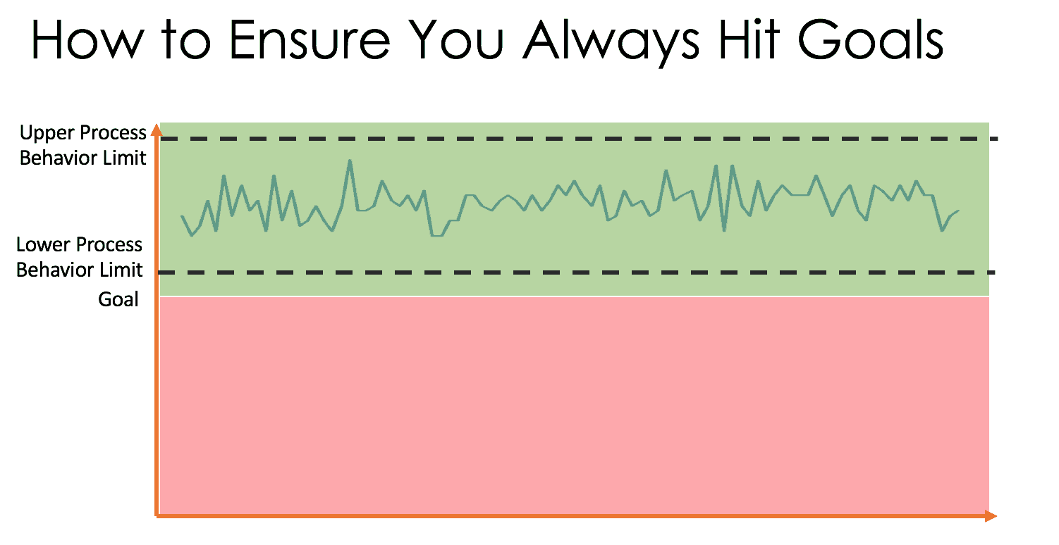 Well, if we have a stable system, in a factory, a hospital, or elsewhere, our performance is going to fluctuate. There's always some amount of variation in a system's performance. With this fluctuation, it's a good bet that many data points are going to be below average – maybe about half the time! This is especially true when “expectations” for our target is based on average past performance, as I often see.