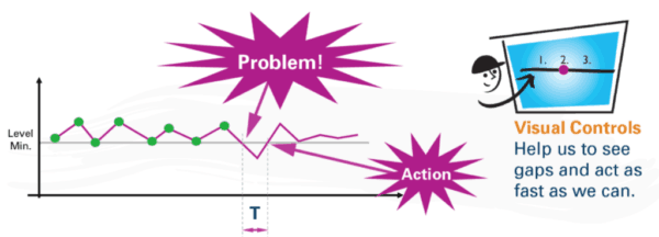 “Visual controls” (better described as “charts and metrics”) might lead to overreaction and wasted effort. Acting “as fast as we can” isn't the goal – acting when we should is a better approach, I'd say.