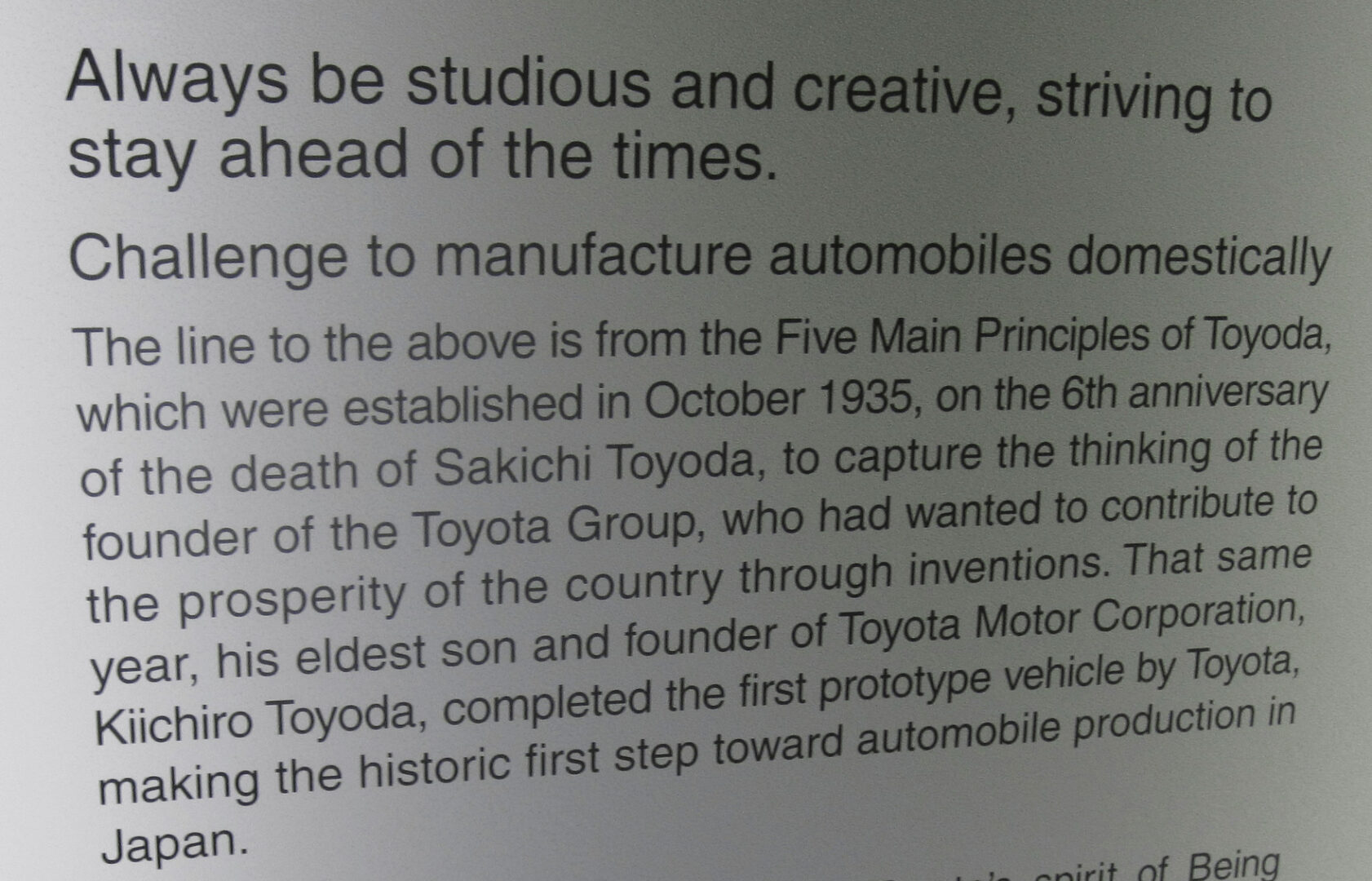 As I prepare to go back to Japan in late February for another Lean healthcare study tour (there's still room if you want to join us), I was flipping through some pictures the other day with quotes from the Toyoda family. Their family has contributed so much.