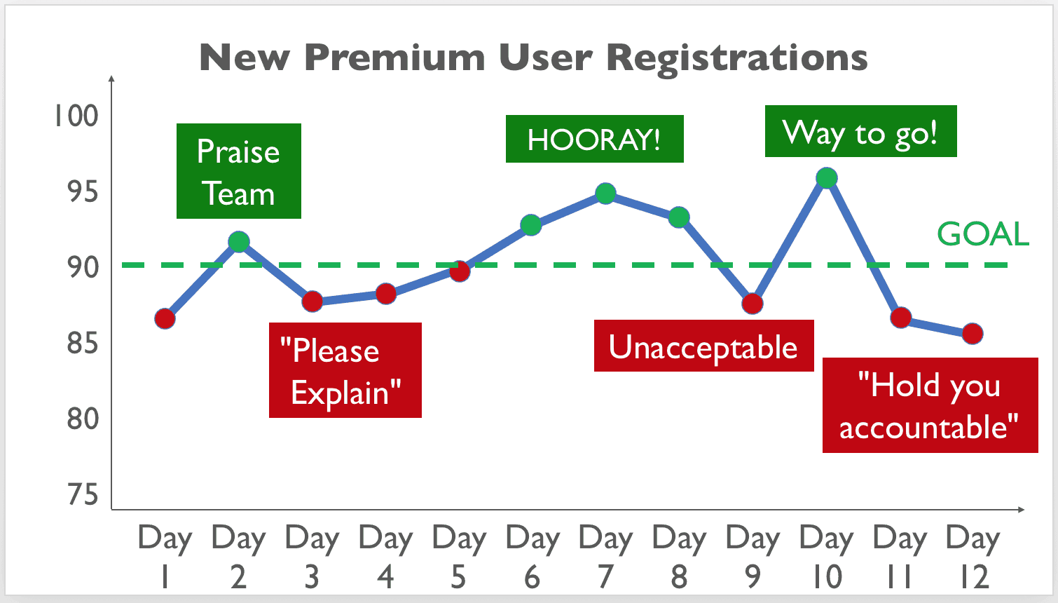 We come back the next day. We see, good, we have an uptick. Performance is better. We're above the goal. We color that green. We praise the team. We maybe pat ourselves on the back too as leaders because good for us setting that goal. We motivated people.