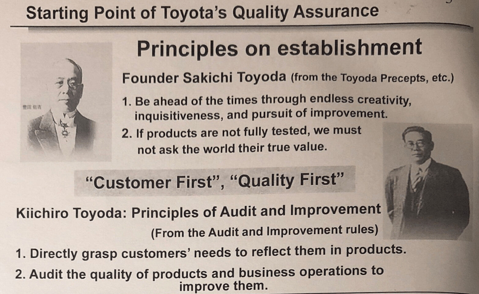 Toyota had some quality principles, but still wasn't delivering quality levels that were acceptable to the market, yet alone being anywhere near “world class.”