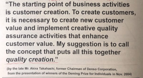 Toyota shared a quote (from the leader of another company) about focusing on customers and creating value: