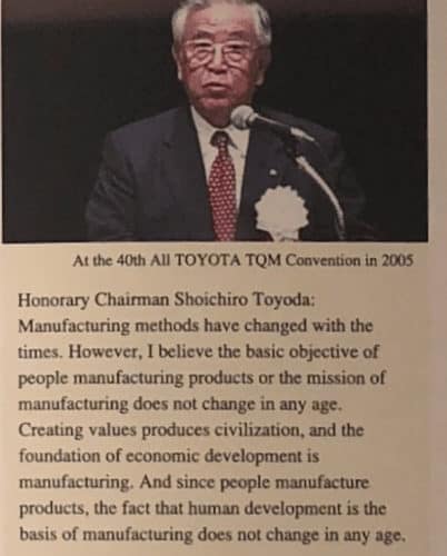 “TQM activities serve as the foundation for achieving that goal [of ‘creating better cars'] and the entire Toyota family is engaged in TQM activities.”