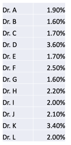 Dr. K has a rate that appears to be double that of Dr. C. Does that mean we should avoid Dr. K? Let's let the PBC tell us: