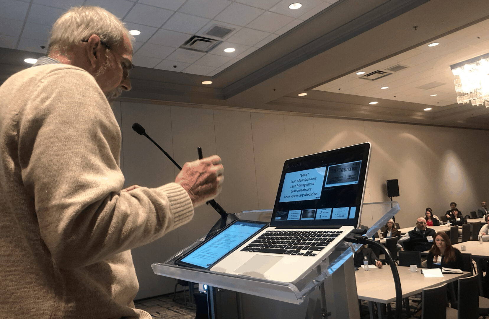 About a week before the conference, Chip was the lead presenter for a webinar on the broader Lean methodology and its applications in vet med practices. At the conference, Chip teed things up (talking about “the why” — why is this important for vets and practices), and then I was the lead presenter about the “Kaizen” approach to continuous improvement.