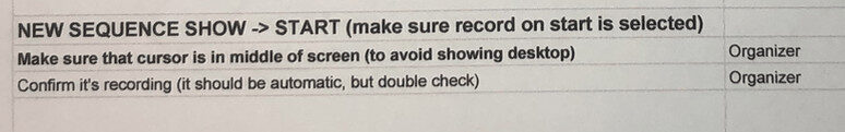 With the autorecord, and other changes that now allow you to show your screen without starting the webinar, the new checklist sequence was supposed to be this: