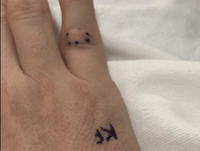 She confirmed my name and procedure (as did everybody else) and she marked the correct finger and signed her initials: