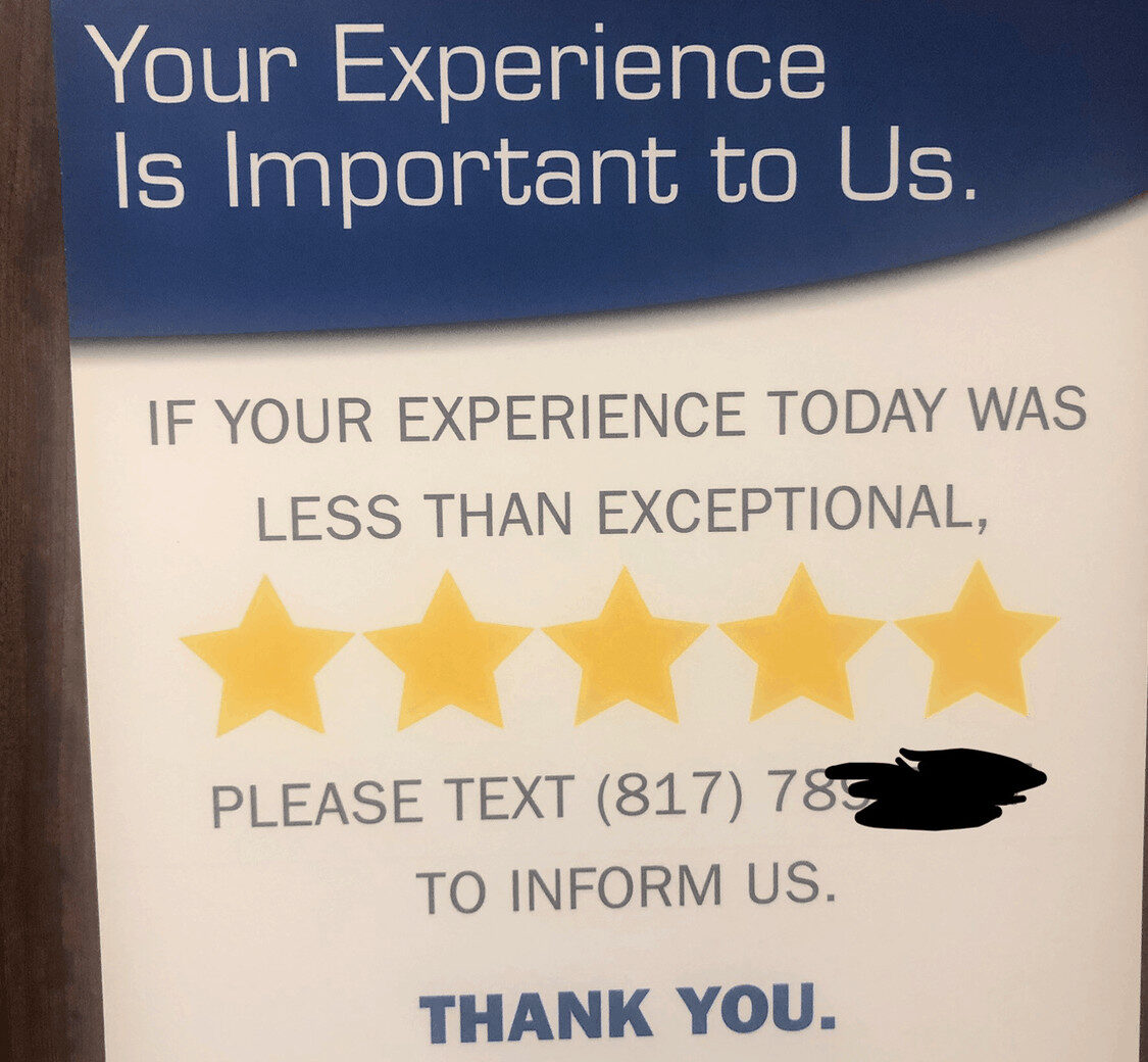 The orthopod's clinic had a sign that seemed to invite feedback (or maybe they were conditioning me to give top marks on any patient satisfaction survey).