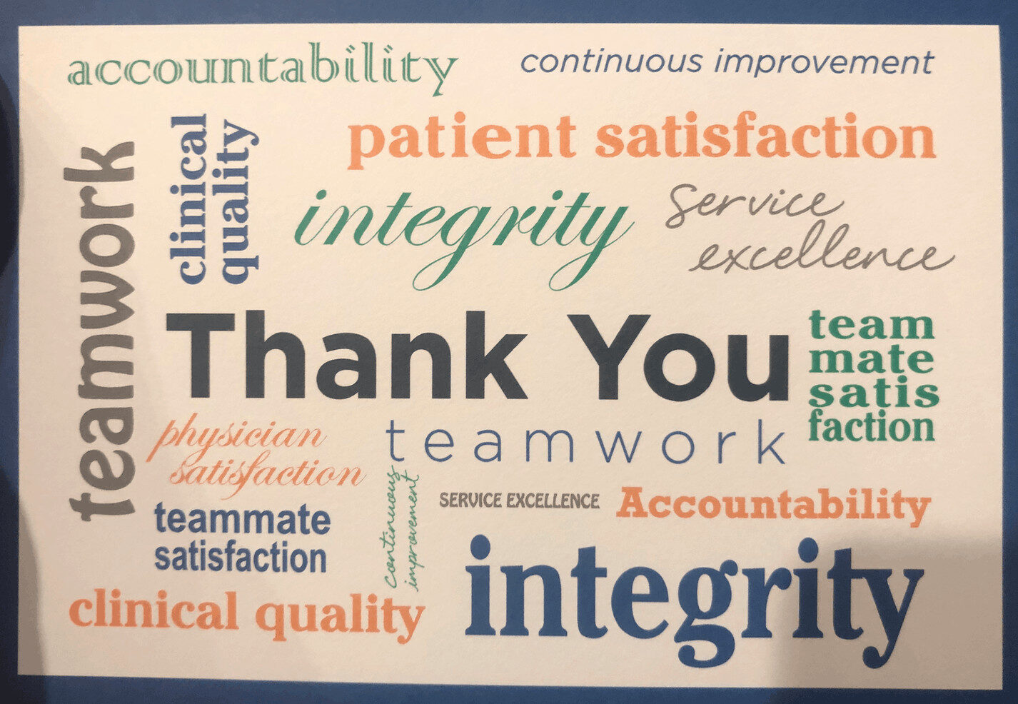 I was given a generic thank you card that implies they care about continuous improvement: