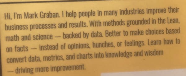 “I finished this book about a week and a half ago. Mark has created an excellent companion and guide for those of us who seek continuous improvement while facing the demands for “meeting” targets from upper management. It is well explained and filled with clear and valuable examples.