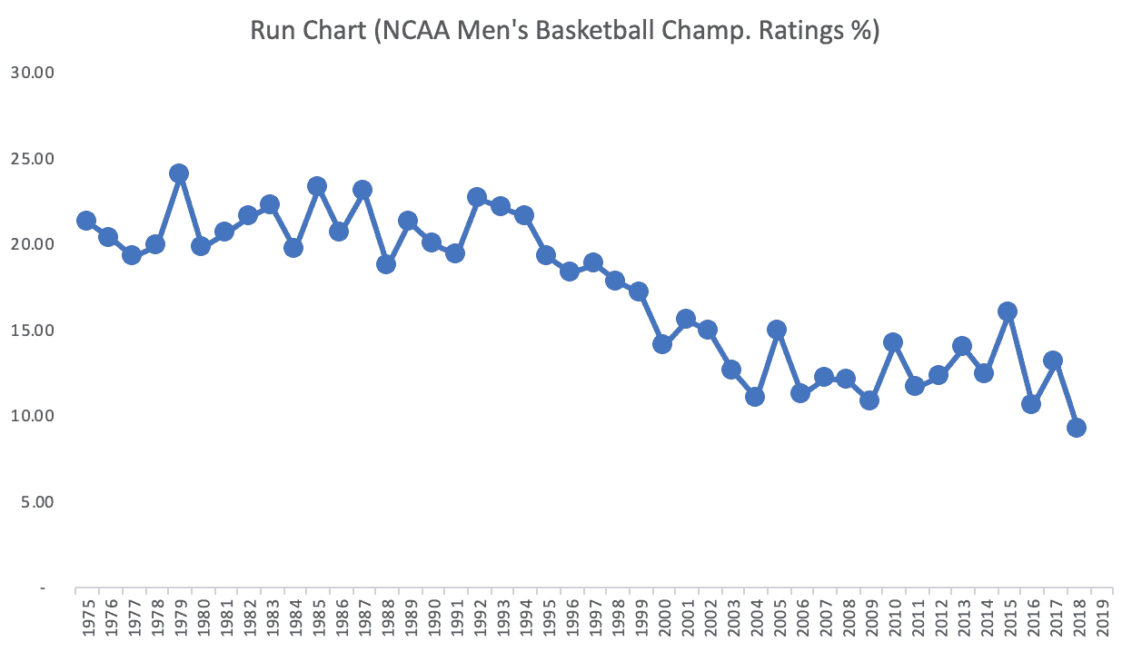As Don Wheeler says, “Without context, data have no meaning.” So, the 2019 Final Four ratings are up 13% from last year?