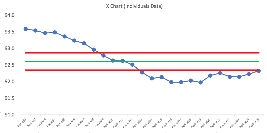 Now, we need a Process Behavior Chart to tell us if this is all routine variation or if there's any signals to be found.