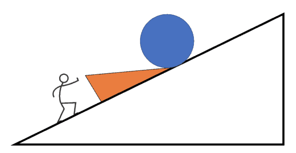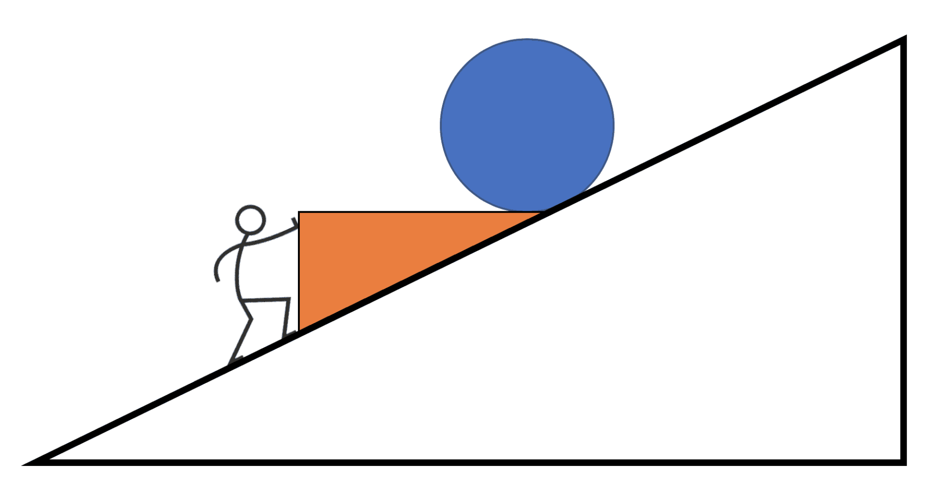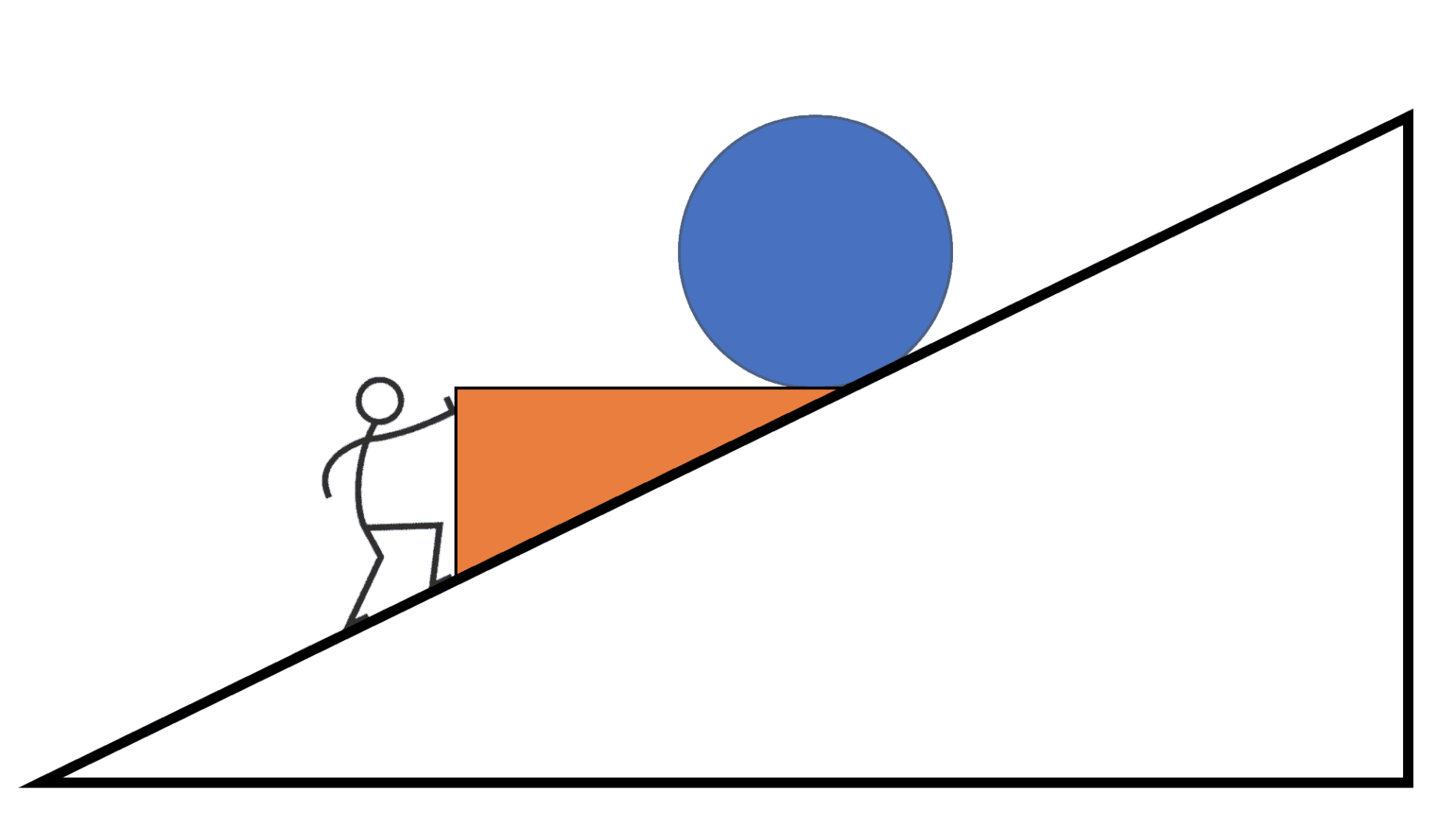 We usually see some sort of disc or sphere that we're trying to get up a hill. These are usually two-dimensional drawings, but there's something round-ish that we need to get uphill.