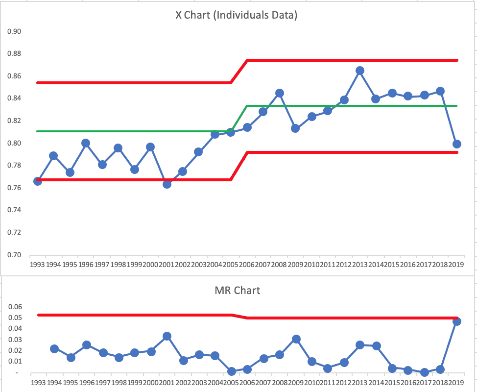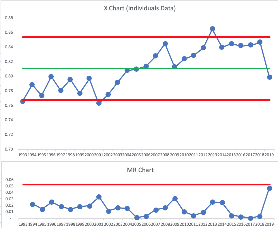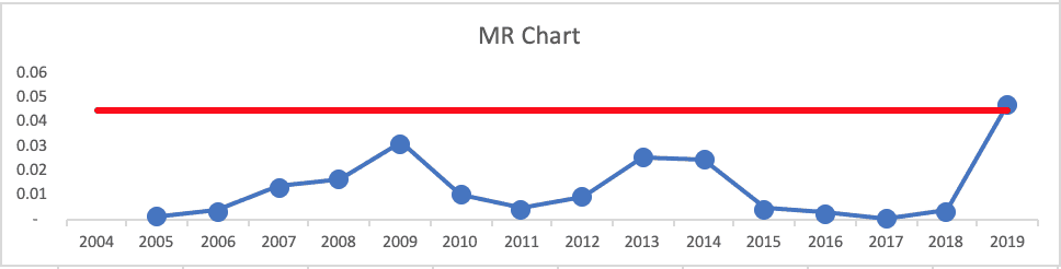 Is 2019 a signal? It's close on both the X Chart and the MR Chart.