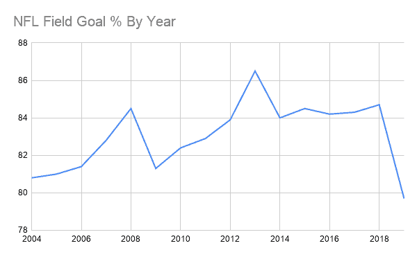 “Nearly every year, the league's kickers get better–but in 2019, field goal accuracy is down 5 percentage points. What happened?”