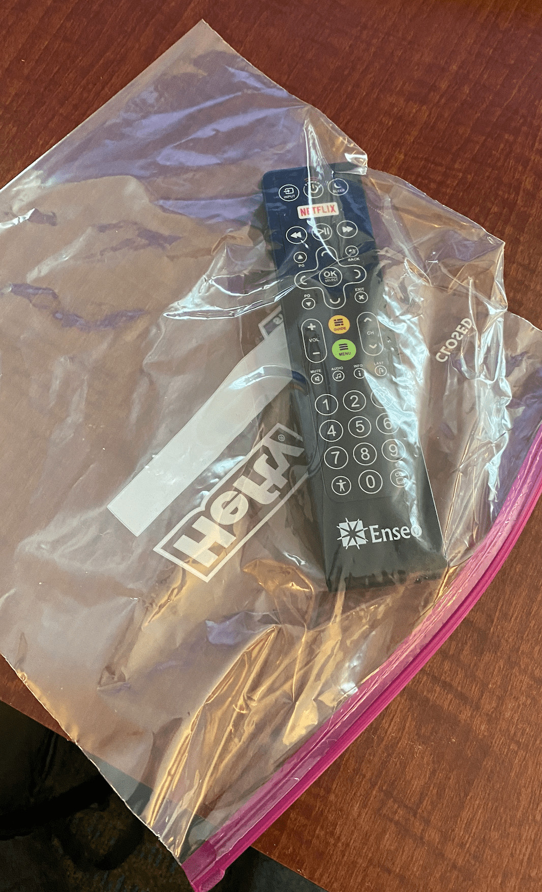 The TV remote can be put in a Ziploc bag (quart or gallon sized) — this is something one traveling friend of mine has always done. It can't hurt.