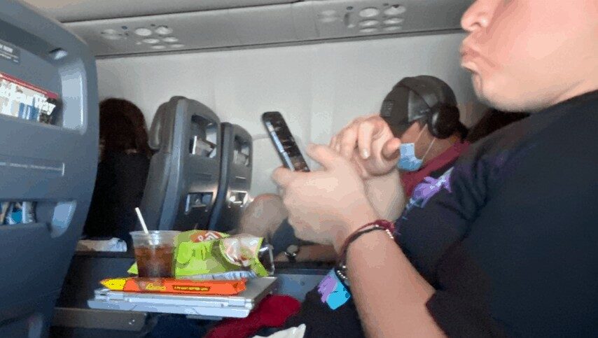 I also used the recommended strategy of turning on the overhead air nozzles, so it was blowing down as strong as possible in front of my face. That air is highly filtered (as opposed to the air that was coming out of my seat neighbor's unmasked mouth). The idea is that the downward airflow would help provide a bit of a shield. I hope that's not just spreading the potential germs toward others. All the more reason why we should all wear masks on board.