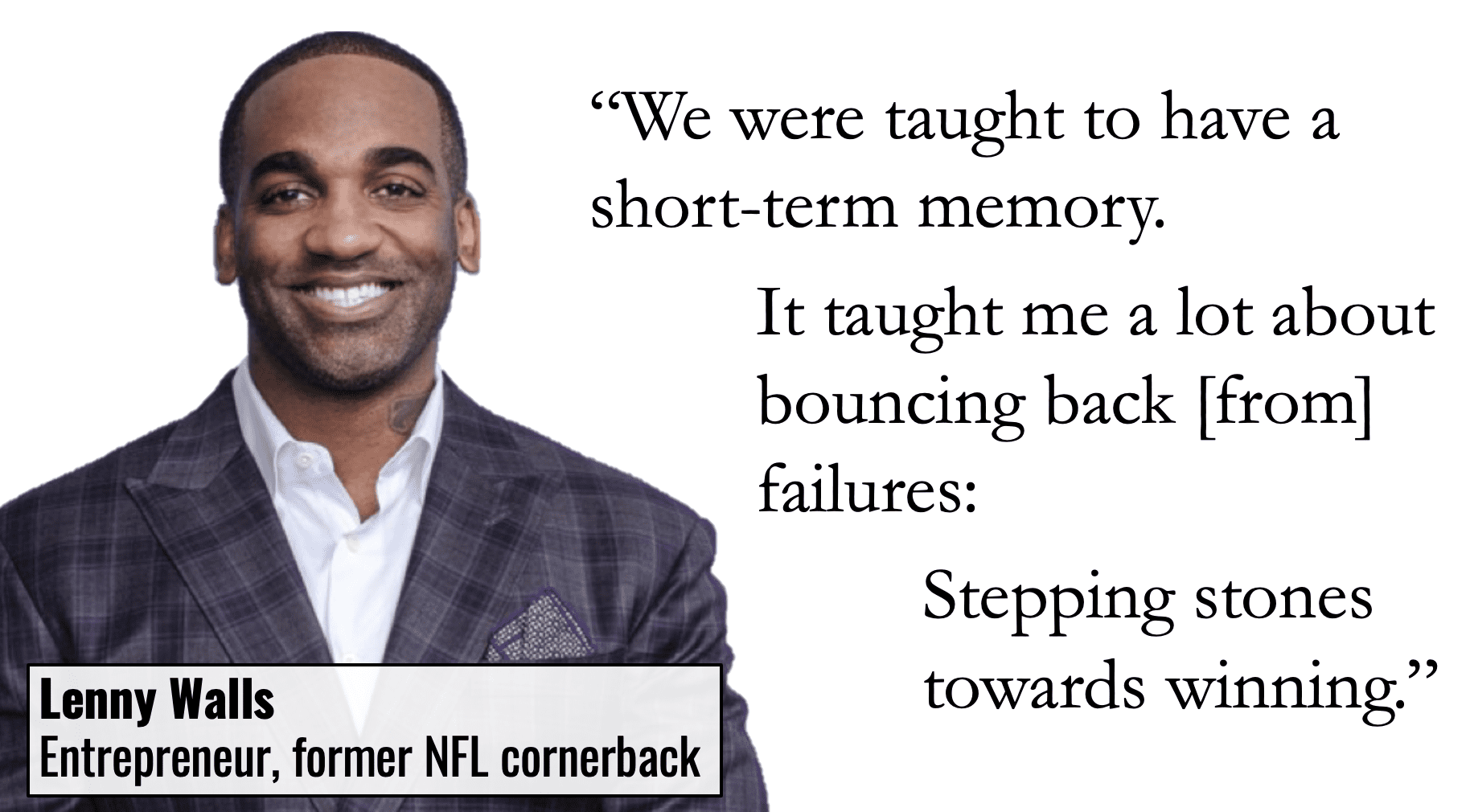 As my podcast guest Lenny Walls, a retired NFL cornerback said: