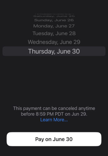 The Apple Card interface is also pretty good in that the scroll wheel stops at the due date and you can't scroll further. Although, that could be more clearly labeled as “due date.”