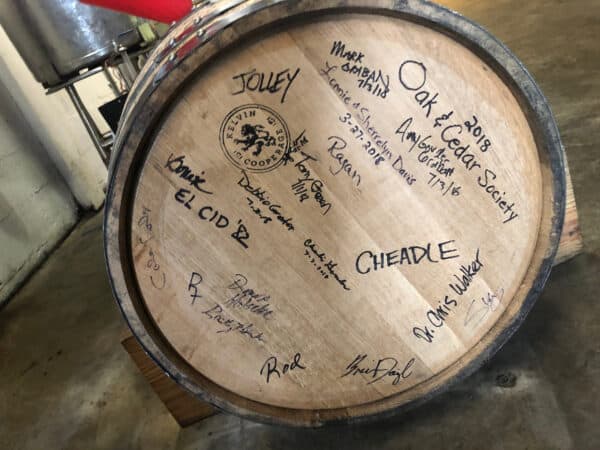 A few weeks back, we drove down to say hi and pick up a few bottles that I had purchased through his website, and he gifted us a bottle of “Cafe Olé” that we had helped put into a barrel, back in 2018.