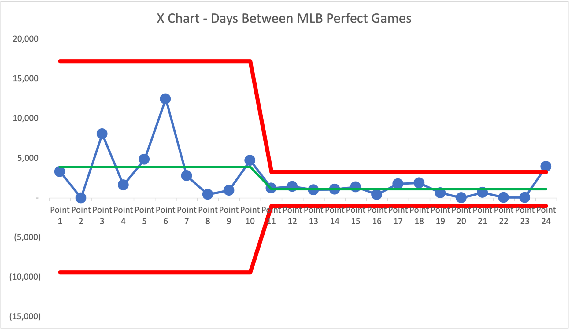 But this is an application for charting “days between perfect games” if we wanted — to practice the method, I guess.