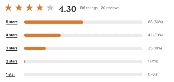 The average Amazon review is 4.6 out of 5.0, with 75% of them being 5-star ratings and reviews.