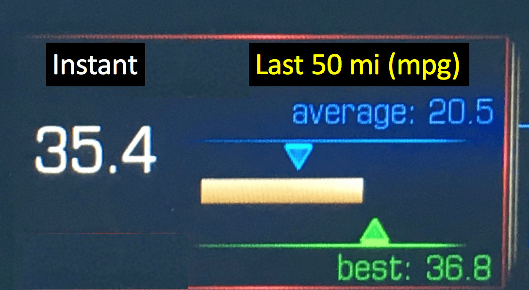 I don't know for sure what the “average” of 20.5 represents. That's probably what the “Last 50 mi” refers to. I'm averaging 20.5 mpg for the last 50 miles?