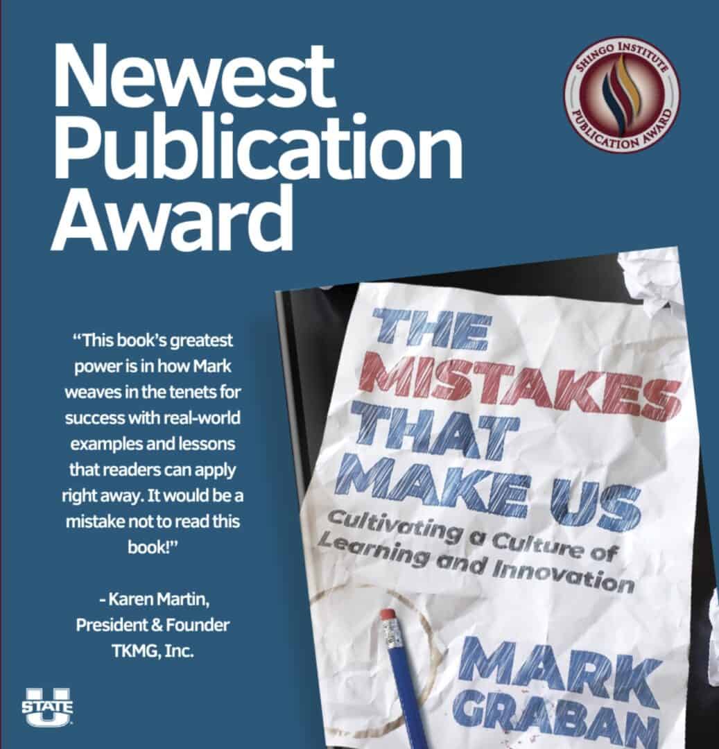 LOGAN, Utah – February 5, 2024 – The Shingo Institute, a program in the Jon M. Huntsman School of Business at Utah State University, is pleased to announce that Mark Graban has been awarded the Shingo Publication Award for his transformative book, The Mistakes That Make Us: Cultivating a Culture of Learning and Innovation.