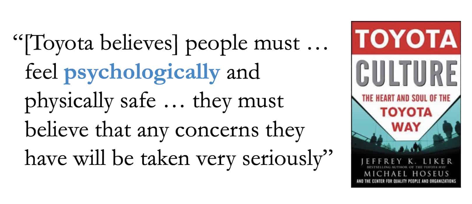 In recent years, I've come to believe that Psychological Safety is the oft-unheralded foundation of the Toyota Production System and Lean Management. Former Toyota Kentucky leader Mike Hoseus agrees, as we discussed in this Lean Blog Interviews episode — and as mentioned in the book Toyota Culture, that Mike co-authored with Jeff Liker.