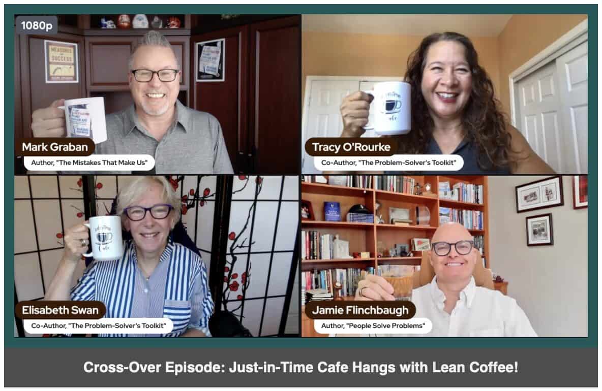 In Season 2, Episode 4, Mark Graban and Jamie Flinchbaugh are joined by the hosts of the Just-in-Time Cafe podcast, Elisabeth Swan and Tracy O'Rourke.