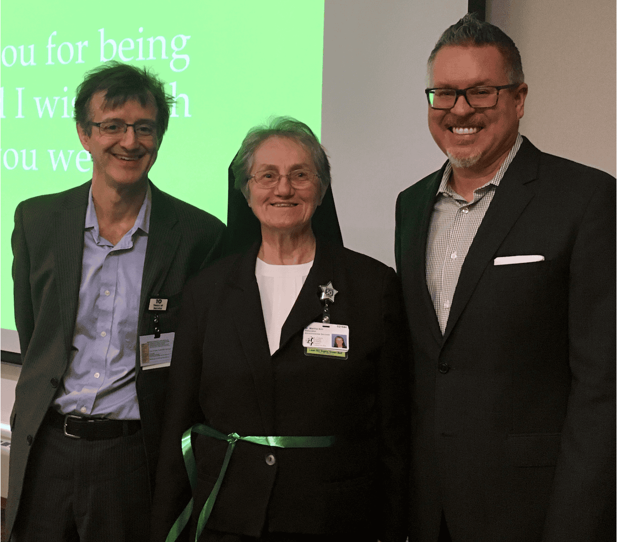 Sister Martha Ann had earned her Lean Six Sigma Green Belt and wore a small green ribbon on her habit as a quiet symbol of that commitment (seen in the photo above). It wasn't about certification for its own sake. It was about serving patients better, developing her team, and building a culture where improvement was everyone's job–starting with her.